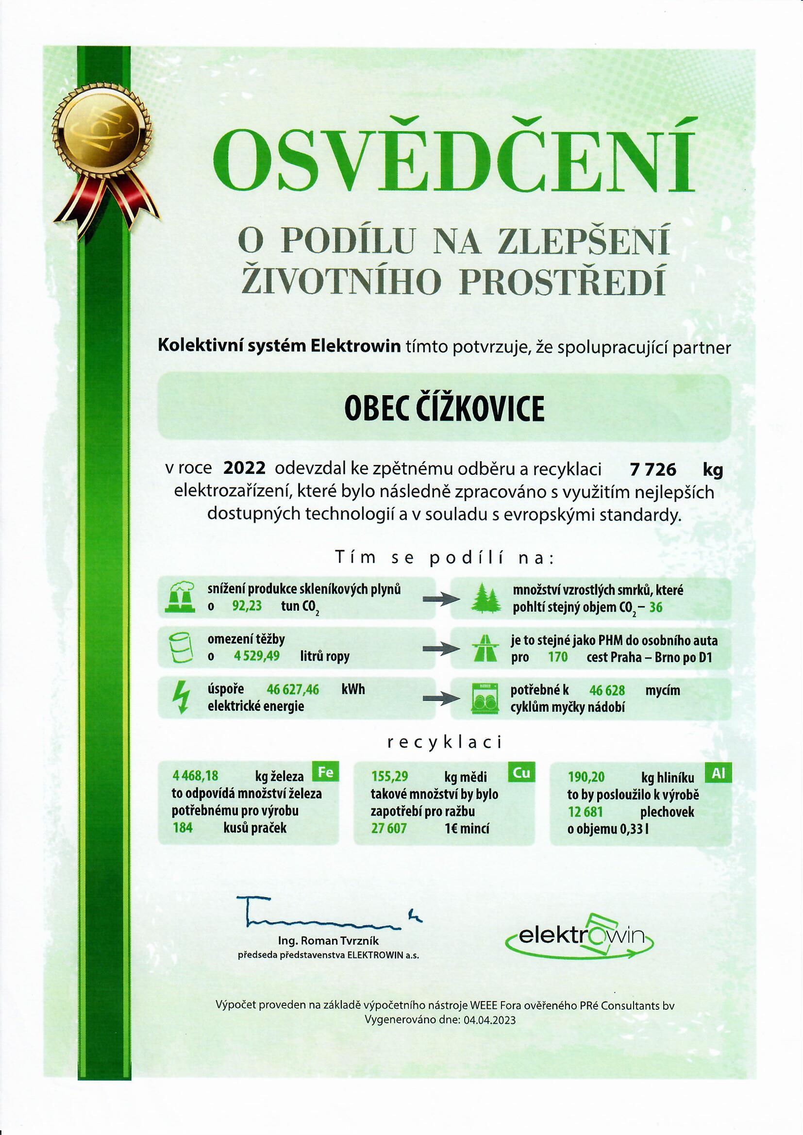- Osvědčení o podílu na zlepšení životního prostředí za r. 2024 Typ: PDF dokument, Velikost: 2.3 MB