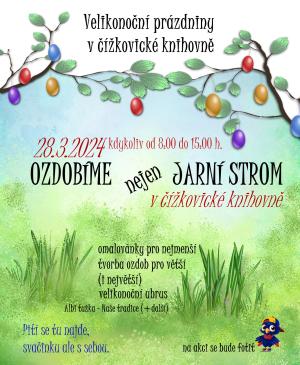 Přijďte si pohrát a ozdobit nejen jarní strom do místní knihovny na obecním úřadě. Knihovna pro Vás bude otevřena 28.3.2024 kdykoliv od 8:00h-15:00hod.