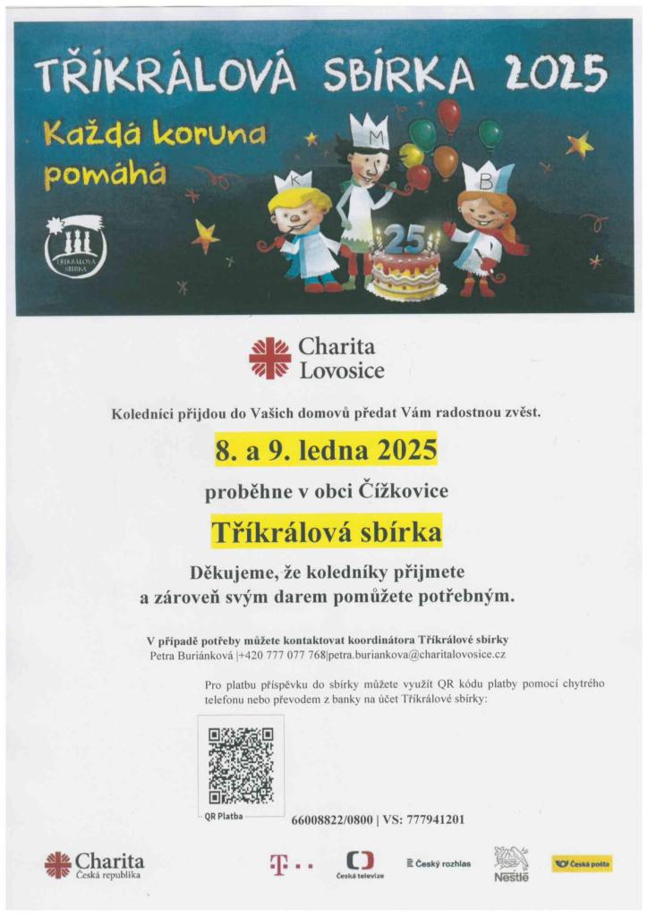 Koledníci přijdou do vašich domovů předat Vám radostnou zvěst 8. a 9. ledna 2025.