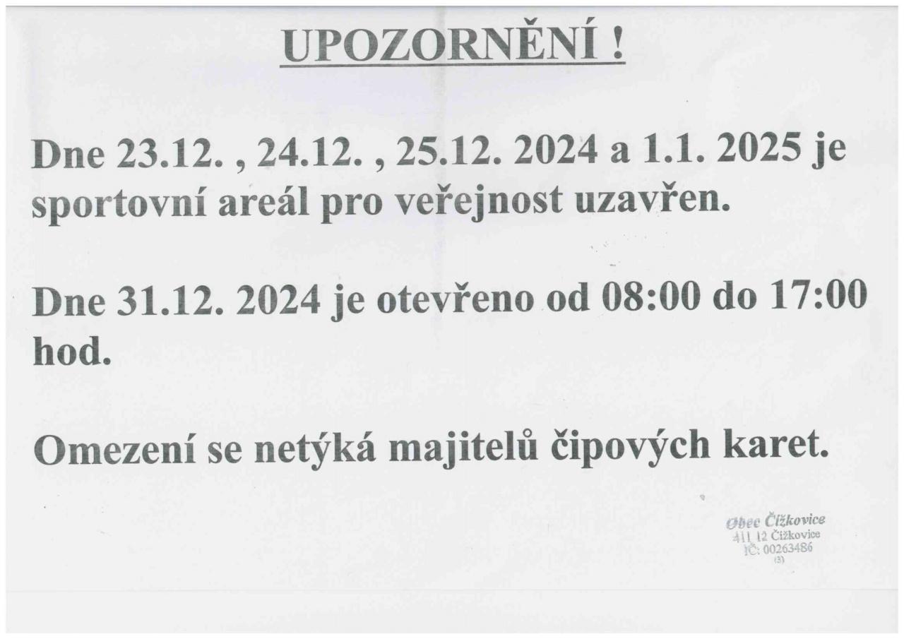 Upozornění na uzavření sportovního areálu pro veřejnost