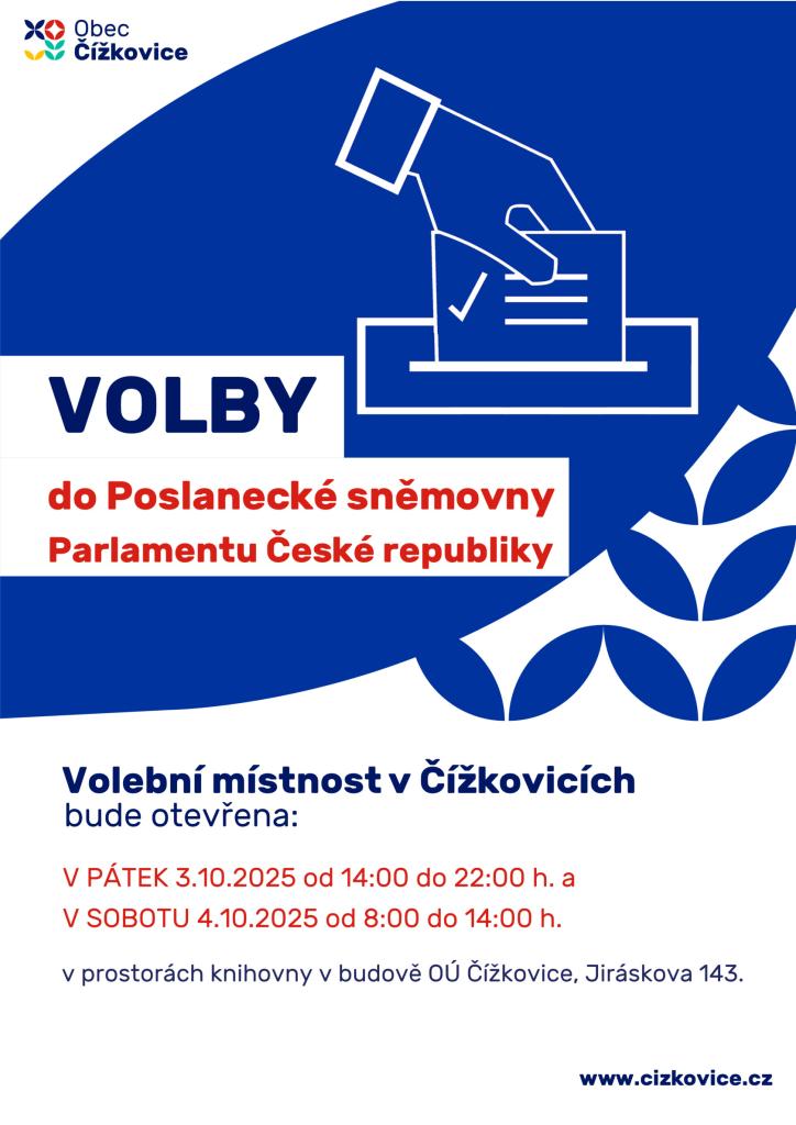 3.10. a 4.10.2025 se konají volby do Poslanecké sněmovny Parlamentu České republiky. Přijďte k volbám.