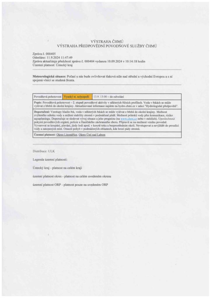 Výstraha ČHMÚ - výstraha předpovědní povodňové služby ČHMÚ