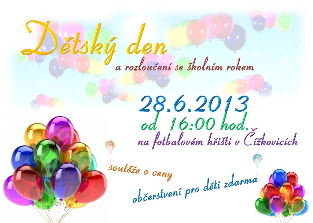 Z důvodu nepřízně počasí se termín konání Dětského dne přesouvá na 28.6.2013 od 16:00 hod. .